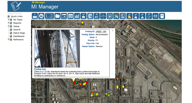 Safety Integrity and Incident TrackerOver the years I have come across many Mechanical Integrity (MI) software applications. Some were very complicated and some were too simplistic. Most had a specific type of asset they were specialized in such as boilers, vessels, piping, instruments, etc. but fell short of an overall easy to use MI solution. The screen shot shown here is of a generalized MI application that was used to track safety risks and pre-incident issues. It uses a Google Maps interface to show the region and color coded icons to represent safety risk, pre-incident issue, asset condition, etc. If you have an aerial photograph, it can use that as the background as well. In a glance an assessment of the situation can be seen. Clicking on the asset icon, pops-up an information window that can be coded to show the findings, material loss curves, projected retire dates, inspection documents, etc. Different icons can be used to distinguish between different asset types. The application is tablet compatible which allows the "inspector" to document the finding where it is and using GPS functionality, its GPS coordinates. It has a user configurable checklist editor to create and edit the checklist questions. It also has a datalogger interface for data intensive information..... |